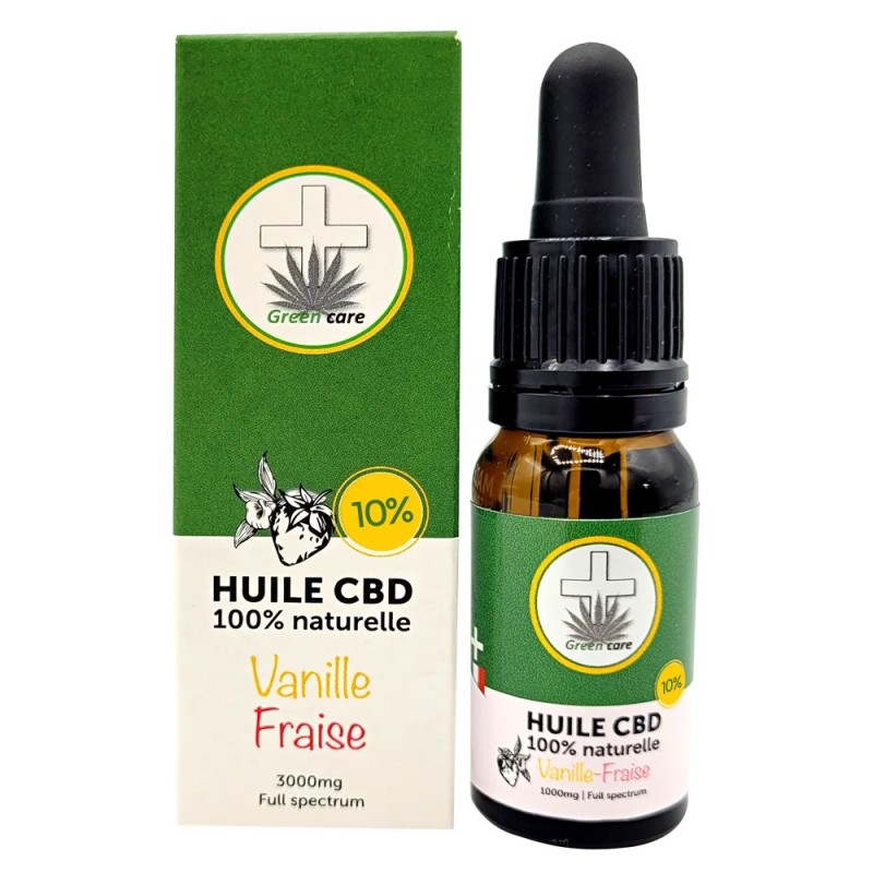 Green care vous présente une harmonie parfaite entre bien-être et plaisir gourmand avec l'Huile concentrée 10% Vanille Fraise de Green care. Conçue pour ceux qui cherchent à intégrer le CBD dans leur routine de relaxation sans les désagréments d'un goût terreux, cette huile allie la puissance du CBD à 10% à une saveur irrésistiblement fruitée et sucrée.